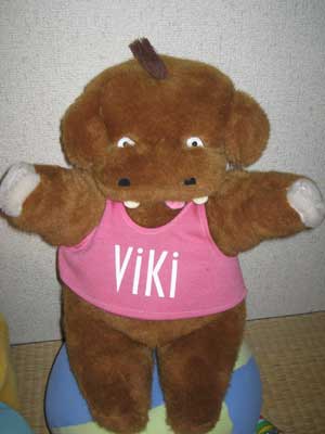 こんにちは紳さんです。 こないだ、隣に住んでるオジサンから、ぬいぐるみをもらいました。 オジサン曰く、 「こないだのビデオ(アダルト)のお礼だ。あんちゃん、こういうの好きだろ」 とのことです。 そうです、紳さんはぬいぐるみが大好きなのです。 部屋にはいっぱいクマのぷ〜さんのぬいぐるみがあります。 そう、紳さんは無類のぬいぐるみ好きなのです。 もし寝る時に、「大きなぬいぐるみ」と「全裸の藤本美貴」、 どちらか好きな方が添い寝してくれるとしたら、 間違いなく全裸のミキティを選びます。(選ぶだけでは済まされない) そんなわけで今回、このぬいぐるみをもらいました。 ・ ・ ・ ・ ・ ・ ・ ・ ・ ・ ・ ・ ・ ありえない。 可愛くない。 可愛くない上にピンクの服きてる。 ヴィキ。 発音しづらい。 意味がわからん。 藤本ヴィキか。 ヴィキティなのか。 なんだろう、カバなのかな? なんで舌が出てるんだろ? てゆーか、目が埋まりすぎ! でも、こっちを見てる気がする。 虫っぽい臭いがする。 すげぇ捨てたいんだけど、オジサンの行為を無碍にはできないし・・・。 とりあえず、新しい仲間ができたとさ。 おしまい