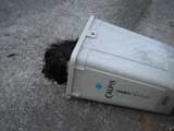 家の隣にある自販機のゴミ箱が風で倒れていて