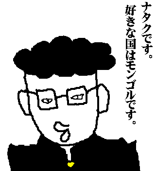 6/3 明日は健康診断に行ってきます。(胃カメラは飲まない)(怖いからね) こんにちはゴウです。 今日はナタクとの出会いの話を少々。 ナタクとの出会いは中学校1年生の時。 俺の生まれ育った町には中学校が1つしかなく、町の小学生は全員同じ中学に通っていました。 そして俺は、彼と同じクラスになったのです。 そのクラスには、ハルキ、紳さん、づやもいたのですが、今日はナタクの話です。 クラスの中には、小学校からの友達もいましたが、8割以上が知らない人。 当然、お決まりの自己紹介が始まります。 それぞれ名前と趣味、自分のあだ名などを紹介していきます。 まだ中学生になりたて。 みんな少し緊張しながら、微笑ましい自己紹介が続きます。 しばらくしてナタクの番になりました。 俺は、少し風貌の変わった彼の自己紹介を楽しみにしていました。 「彼は一体、どんな人なんだろう・・・?」 そんな素朴な疑問が頭をよぎります。 そして、彼は口を開いてこう言ったのです。 ざわ・・・ざわ・・ざわ・・・ にわかに騒がしくなる教室。 動揺を隠せない男子。 あまりに突然の告白に、事態が飲み込めない女子。 担任の先生もフォローに必死です。 こうして、初対面からクラス全体に衝撃をあたえたナタク。 俺は今でもこの自己紹介を忘れる事が出来ないでいる。
