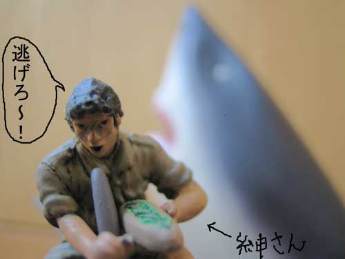 6/24 【紳さん危機一髪!!】 こんな作品をナタクが作りました。 サメ好きな紳さんへの誕生日プレゼントだそうです。 もらった紳さんは狂喜乱舞しておりました。
