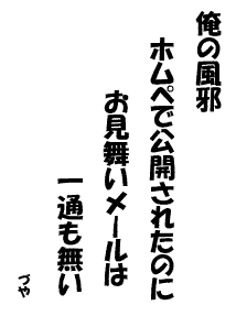 7/7 【づやからのメール】 づやから突然、短歌が送られて来たので紹介します。 だそうです。 えっと、づやの大学の友達でこのサイトを見ているみなさん。 づやが風邪の時くらいメールしてあげて下さい。 彼はウサギさんなので優しくしないと死んでしまいます。 よろしくどうぞ。