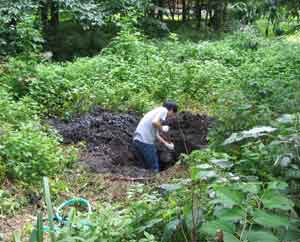8/5 マッチーが俺んちに来た。 特にやる事もなかったので、裏庭に穴を掘る事にした。 二人でシャベルを持って、勢いよく掘り始める。 やっぱりというか、10分で飽きた。 中途半端に掘った穴は、そのまま放置してあります。 僕たちの休日はいつもこうして過ぎていく・・・。 ■ ネタに川柳大会をUPしました。