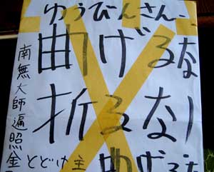 8/25 【電波】 今日ナタクから封筒が届きました。 封筒の裏面。 ゆうびんさん、曲げるな 折るな! とどけ主 曲げるな! 南無大師遍照金剛 かなりの電波です。 中身は紳さんの写真でした。