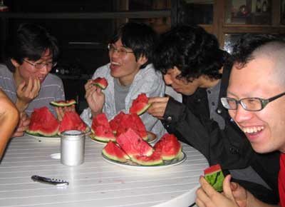 8/27 【夏の思い出】 今年の夏、みんなでスイカを食べました。 写真中央、づやの笑顔が印象的です。 づや、結婚おめでとう!! なんてね。