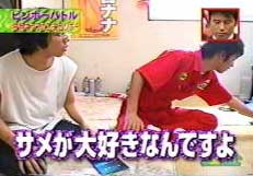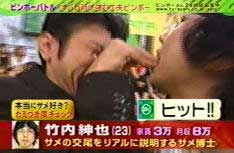 8/23 【変態、ついに全国区へ】 夏も終盤になってきましたね。 みなさんこんにちは、ゴウです。 今日はみなさんに素晴らしいお知らせがあります! なんと、紳さんがTVに出ます!(本当です) TV朝日でやっている銭金という番組に出演するそうです。 TVを全然見ないので、よく知らないのですが、なんでも貧乏人が出演する番組らしいですね。 そんな番組に真性の変態である紳さんが出演するなんて・・・。 非常に楽しみですな!!! 私、紳さんのファンなの。 俺、動いてる紳さんが見たいぜ! 紳さん、抱いて!! って感じの危篤奇特な方は、この機会に是非番組をご覧下さい! 8月26日(木)夜11時15分から放送だそうです。 本人曰く、サメの話で盛り上がったらしいです。 ある意味祭りなので、このサイトの管理人として非常に楽しみにしています。