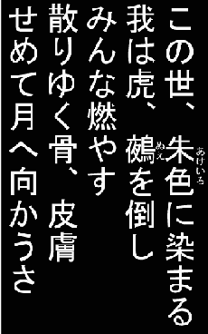 12/18 【みんな凄いね】 いろはにほへと・オリジナル、何気に盛況で嬉しいです。 今度、みなさんの作品をまとめて発表しますので、しばしお待ちを。 なにせ今夜は忘年会ですから忙しいのです。 づや以外のメンバーが集まって、今年一年の反省会をするんですから。 (づやは名古屋にいるので、来れないらしいです。) さぁ、今夜は飲むぞ! 寿司をとりな! 芸者呼びな! 構う事はねぇ! 俺のおごりだ! (本当はボーナスが出たハルキのおごりだ!)