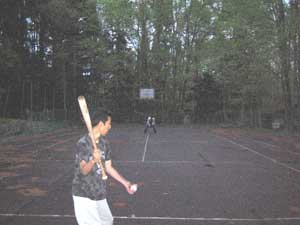 近所の使われていないバスケットコートを使って練習してました。仕事が終わってからの練習なので、いつも薄暗い中での練習です。
