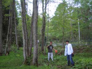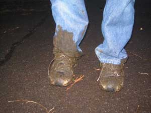 コートの周りは湿地なのですが、そこにボールが飛んでいってしまいました。3人でボールを捜していると・・・ズボッ・・・づやが泥沼に・・・