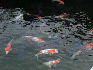 庭には高そうな鯉がたくさん泳いでいるし、