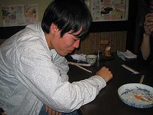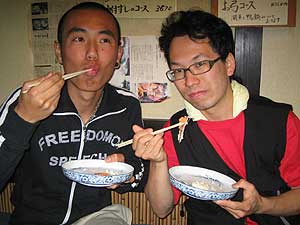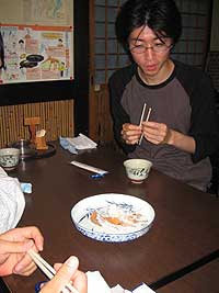 鮒鮨を食べさせてくれる店を教えてもらうバカ2人(ゴウ&マッチー)。