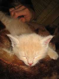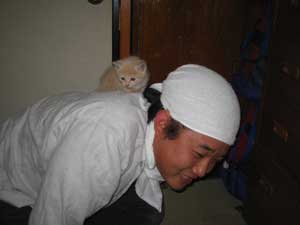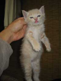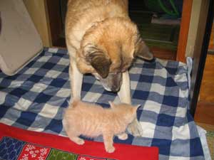 我が家の先輩ペット、ケルベロス(16才)は、子猫を見てビビッてました。