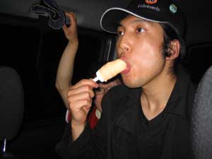 美味しそうにアイスを食べる紳さん。