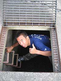 ナタクの家の前にある道路の地下を流れる下水道。そこにナタクの基地がありました。道路にある蓋を外して、ハシゴを降りると、そこには広い空間が広がっていました。