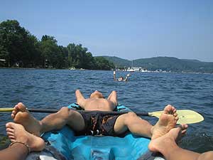 カヌーの上でお昼寝をしました。なんて贅沢な時間でしょう。奥の方ではづやが助けを呼んでいました。でも、せっかくの休日を台無しにされたくなかったのであえて無視しました。しかし、それがいけなかったのです。