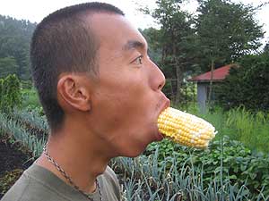 ハルキの実家の畑に行って、とうもろこしを採りました。新鮮なとうもろこしって生で食べても美味しいんですよね。ハルキんちのとうもろこしは、それはそれは美味しかったです。