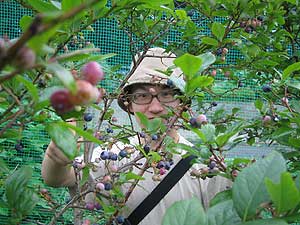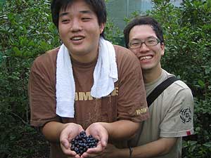 まずはハルキの実家の畑に行って、ブルーベリーを摘みました。俺、ブルーベリー大好きです。美味しいよね。