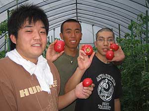 トマトも採りました。紳さんの家はトマト農家なのです。彼の家のトマトはマジで美味いです。