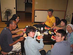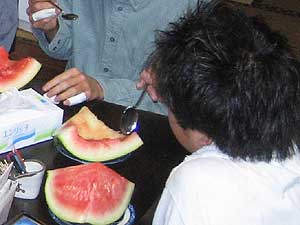 ハルキの本当の両親と本当の婆ちゃんも一緒にスイカを食べました。