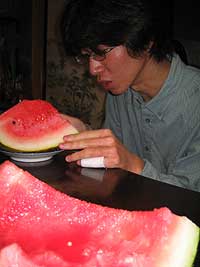 ハルキの家で自家製のスイカをたらふく食べました。マジうまい!