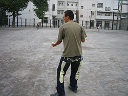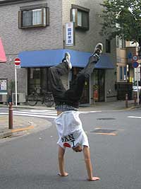 路上で逆立ちをしいてる紳さん・・・ですが、アップにしてみましょう。