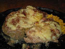 わかりにくいですが、肉の上に乗っているどろどろした物体は、ニンニクペーストです。俺は何を隠そう、ニンニキスト(ニンニク愛好家)だったのです。ステーキには、鬼のようにたっぷりとニンニクをかけます。ああ、美味しい。