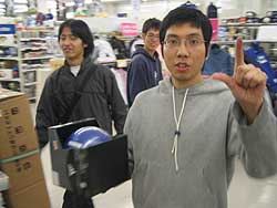 今日は天気もよかったので紳さん、マッチー、づや、イサオ(CG)、湯肉さん(こうどん管理人)の6人でドッジボールでもしようかという事になりました。でも、ボールが無いのでまずはお買い物。いい大人が群がってドッジボールを買いに行く。すばらしい光景です。