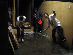 信じられないくらいに汚れたガレージ(普段イサオがバイクを停めている場所です)