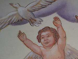 んで、今日のオチは、その建物の壁一面に天使の絵が描かれているのですが、その天使のアップでいきたいと思っています。長文読んでくれてまことにありがとうございました。