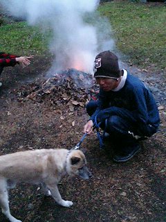 秋なので落ち葉を集めて焼き芋をやりました。芋マジうめぇ。ケルベロスも芋食べて太れ・・・