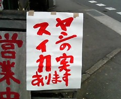 とても真冬に出す看板(?)とは思えません。てかどうしてこの店はいつもこんな真っ赤な文字で書くのだろうか・・・