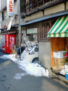 >しかもこの民家の右側では普通に青果店が営業してるし、通行人だれも気にしてないし、、よく潰れないよなこの家・・・