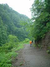 くずれ落ちそうな登山道を10分ほど歩くと、吊橋が見えてきます。