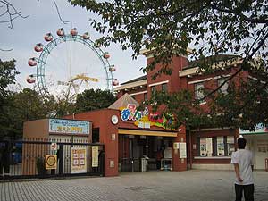 駅から5分ほど歩くと、あらかわ遊園が見えてきました。なんだ!予想よりもちゃんとした遊園地じゃないか。平日の夕方だったので辺りは閑散としていましたが、暇つぶしにはもってこいなので、入園する事に。