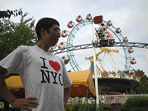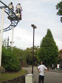観覧車をバックに撮影。後ろで自転車みたいなのを漕いでいるのは女子高生です。なんだか園内には女子高生がたくさんいました。