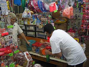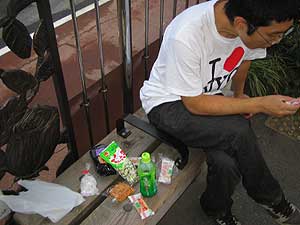 駄菓子をしこたま買った紳さん。きなこ棒美味しかった。