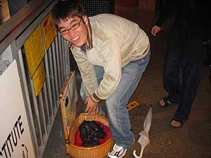 新橋駅で会うなり、巴投げを仕掛ける湯肉さん。テンション高っ!