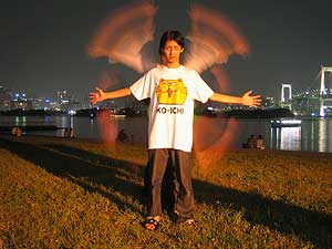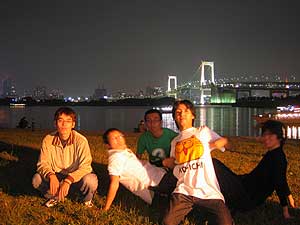 その後、俺達はカップルが愛をささやく海岸(ラブ・ビーチ)にて記念写真を採りました。レインボーブリッジがすごく綺麗。